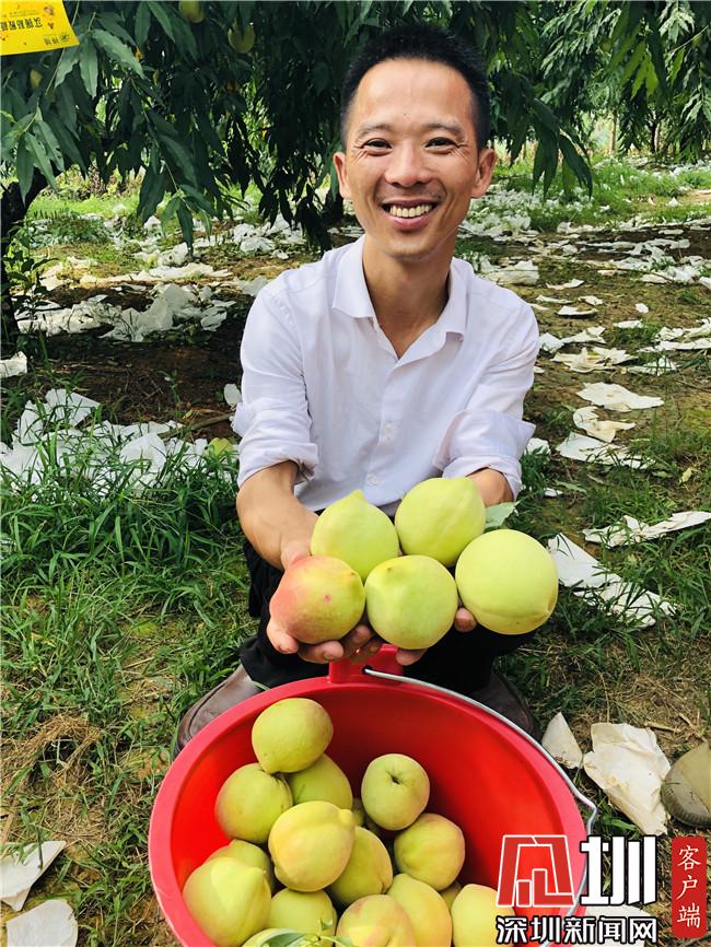 见圳客户端、深圳新闻网讯(记者 王志明)“连平鹰嘴蜜桃肉质脆嫩、清甜爽口、风味独特,欢迎大家选购以及来现场采摘。”7月8日下午,在河源市连平县上坪镇鹰嘴桃生产基地,连平县光大种植专业合作社理事长谢明光拿着又大又甜的鹰嘴蜜桃说,在深圳市南山区对口帮扶下,连平鹰嘴蜜桃硕果累累。
