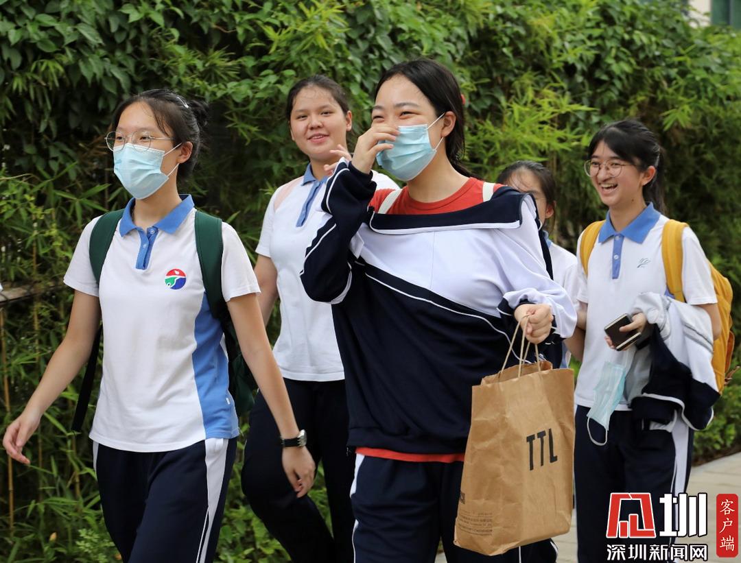 深圳高级中学考点外考生脚步轻盈走出考场,有说有笑。