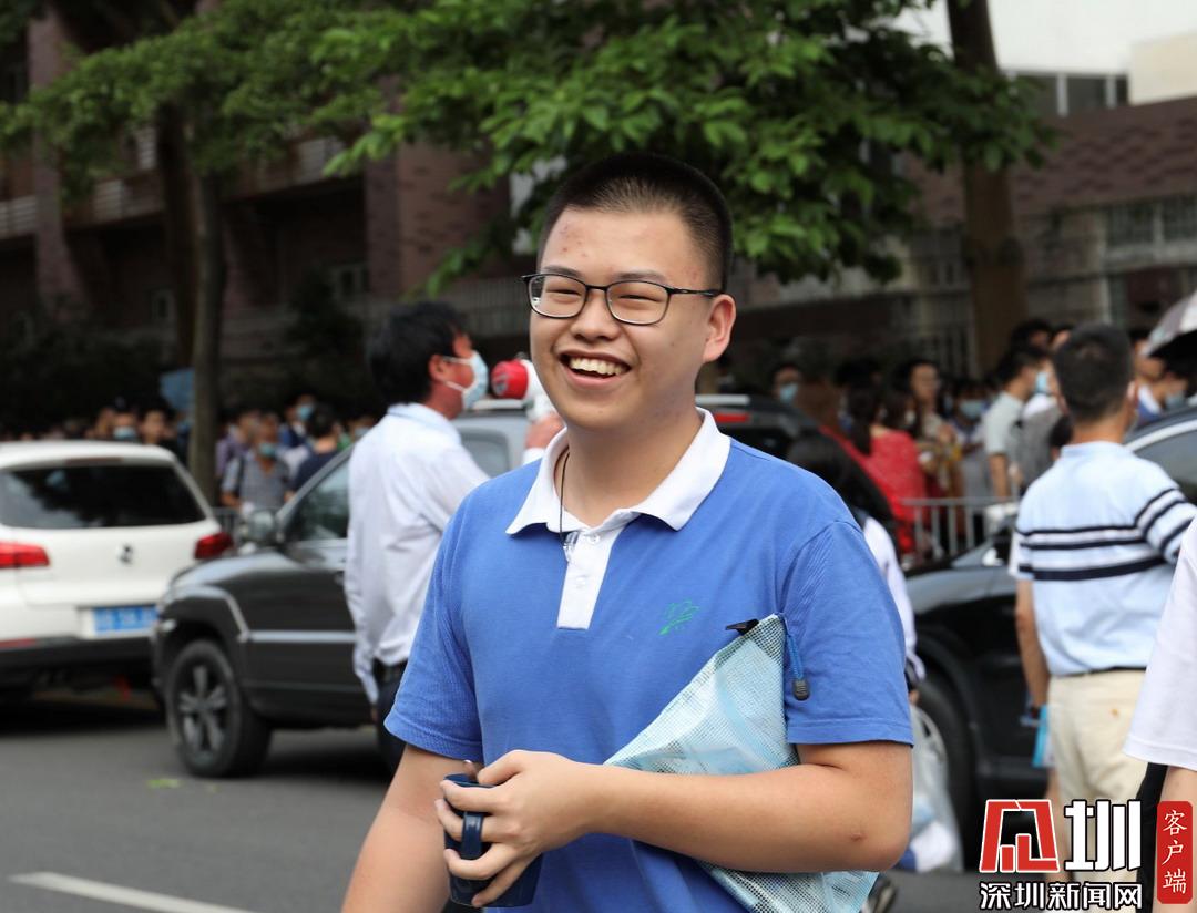 深圳高级中学考点外考生自信满满走出考场。