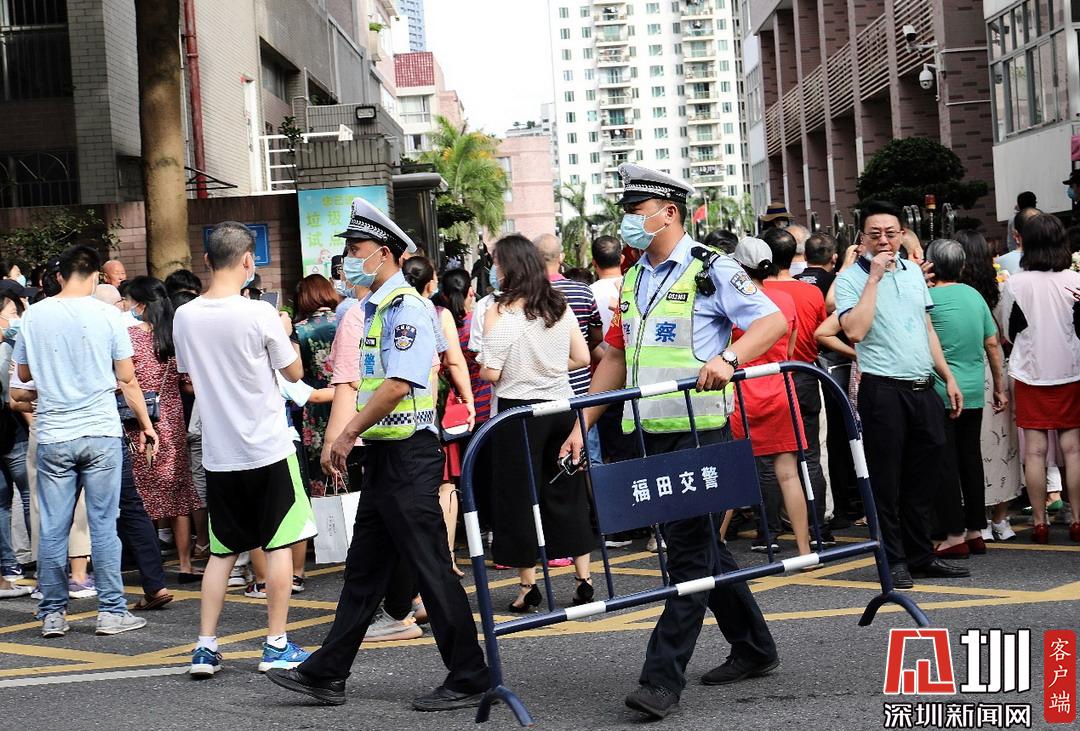 深圳高级中学考点外,福田交警加强周边道路巡逻管控。
