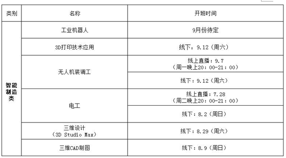 据悉,智能制造类、信息技术类课程7月9日开始报名,企业管理类、社会服务类、创业项目类7月10日开始报名,报名时间截止到7月底。