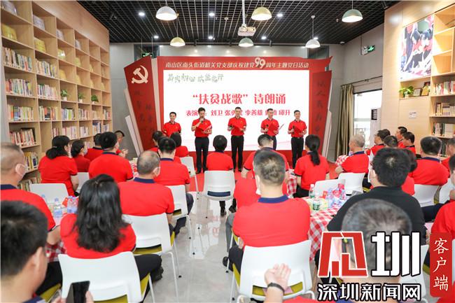 活动现场,南头街道历代扶贫干部朗诵诗歌《扶贫战歌》,活动还进行了南山区第四届“智惠民生”微实事大赛暨小社区大舞台“聚·享”第四季南头街道分赛区启动仪式,同时还举办了党支部结对共建签约仪式,深圳市沐腾科技有限公司党支部与河源市连平县元善镇醒狮村党支部结对,机关4个党支部与4个社区居民党支部进行结对,努力实现基层党组织工作互动和资源共享。
