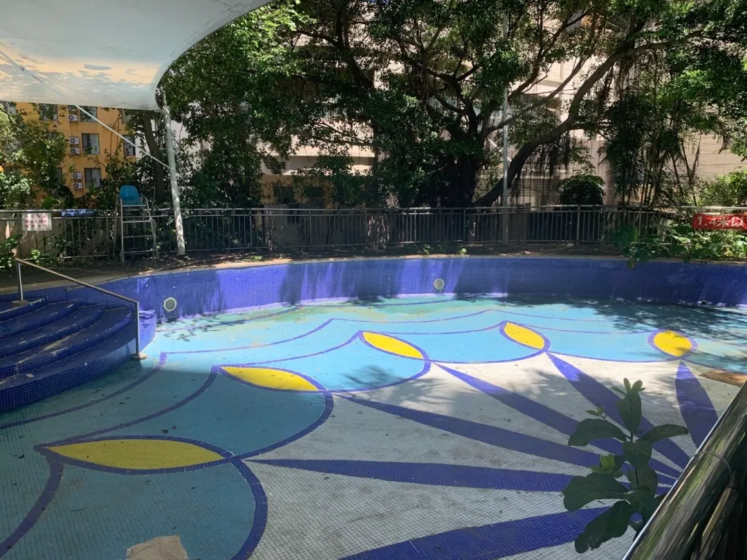 ▲截至6月底,新一代国际公寓泳池仍未开放。消息报记者 曹燚炜 摄