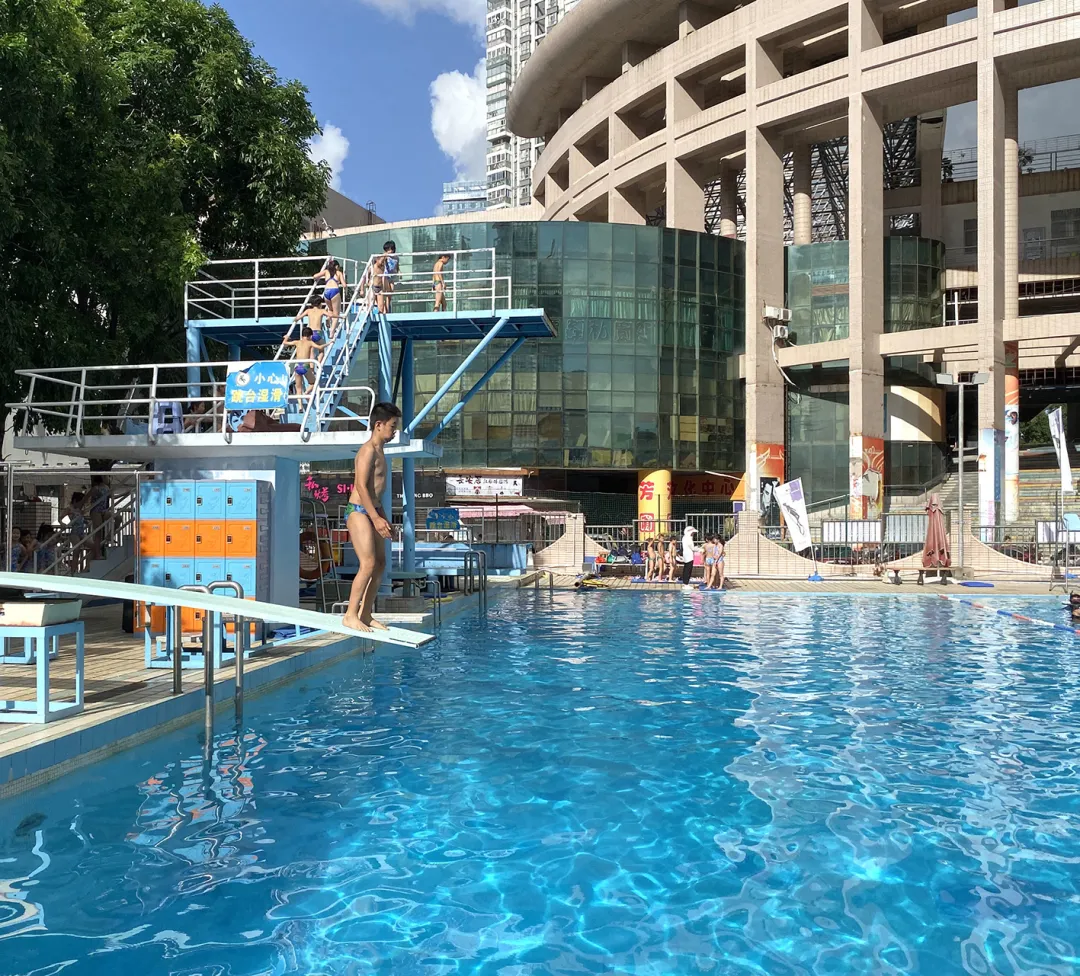 ▲南油小学跳水队在南油游泳场训练。消息报记者 曹燚炜 摄