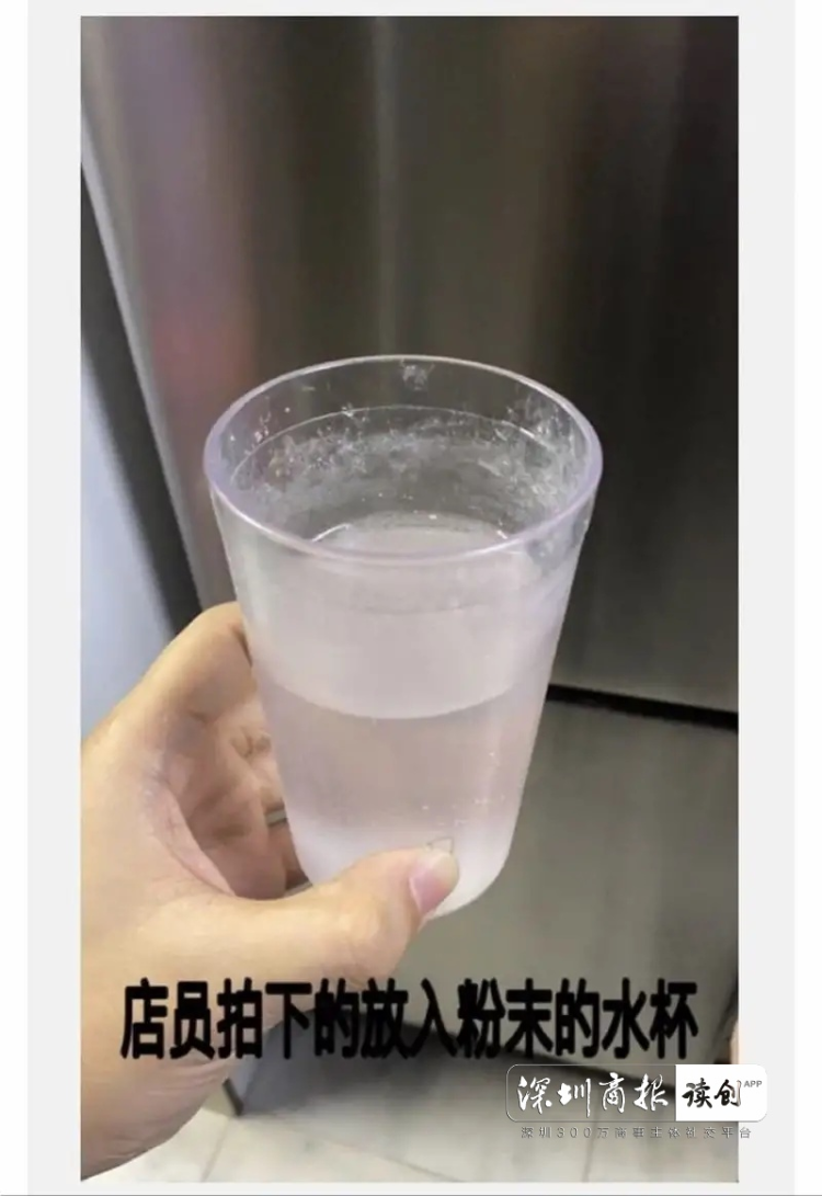 据了解,该店店员以帮忙续杯为由将有问题的水收走,放到后厨作为证据保留。