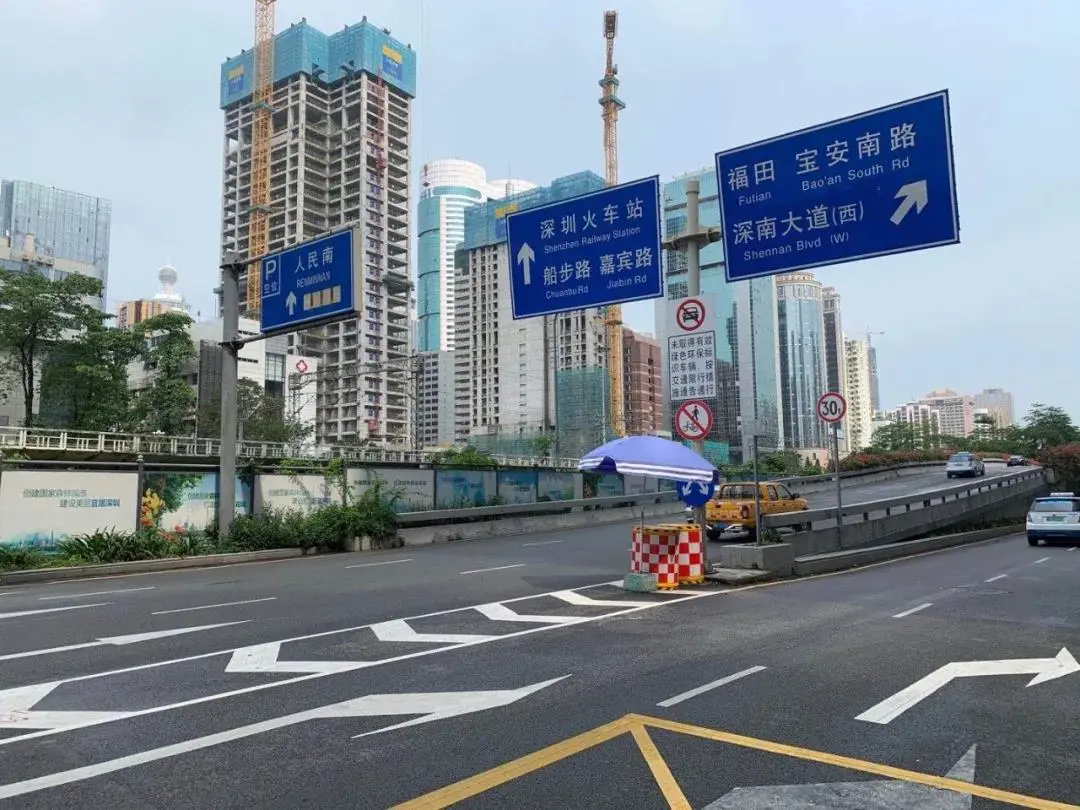 这条神仙“蓝带”原来就在东门步行街周边的和平路跨线桥。这个地方,交通出行量不是一般的大,因为这里有3大商圈镇着:万象城商圈、东门商圈、地王商圈。
