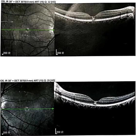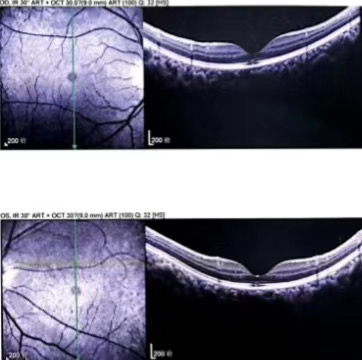 (小秀双眼治疗前后视网膜断层扫描图像)