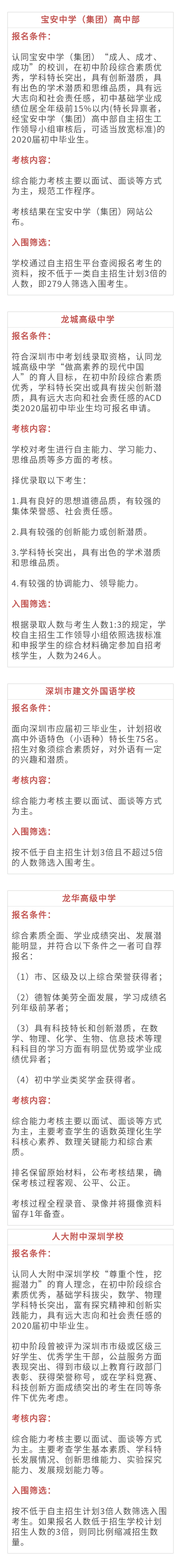 原标题:招1385人!深圳2020年一类自主招生19所高中信息汇总