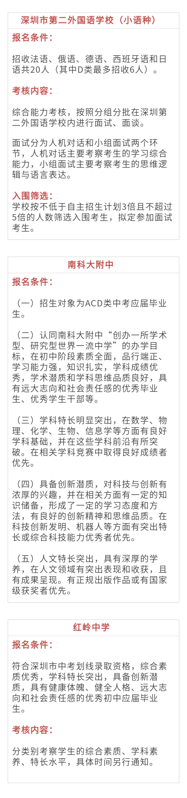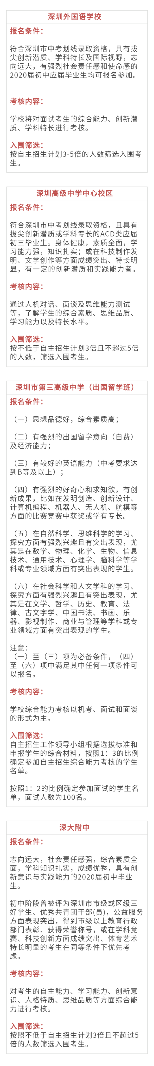 对于自招,各高中有哪些要求?小南汇总了深圳一类自主招生19所高中信息,一起来看看吧!