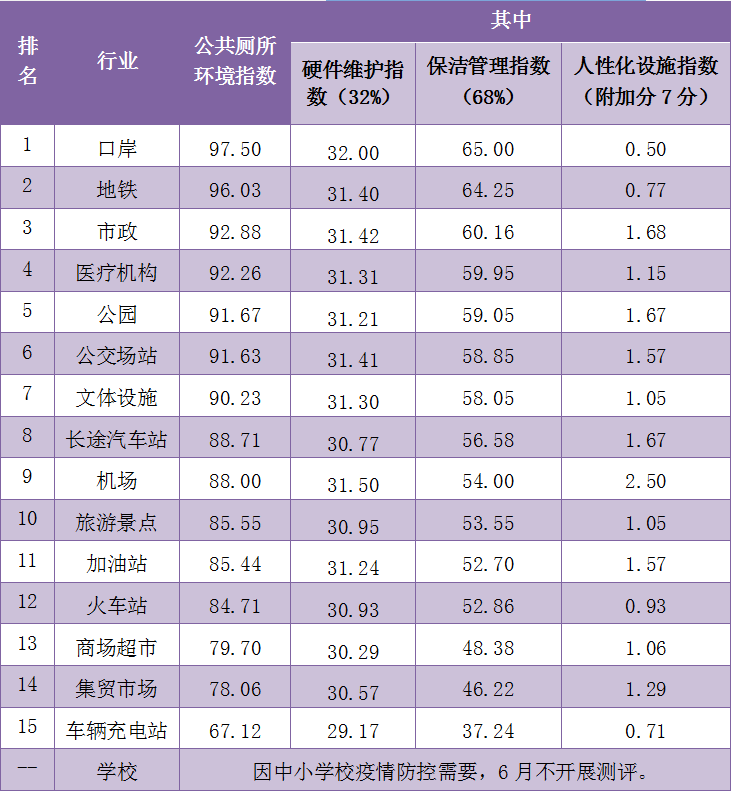 6月全市公共厕所环境指数排名出炉 口岸蝉联第一