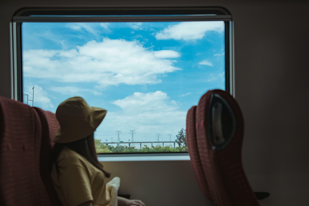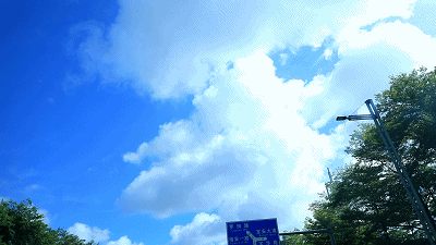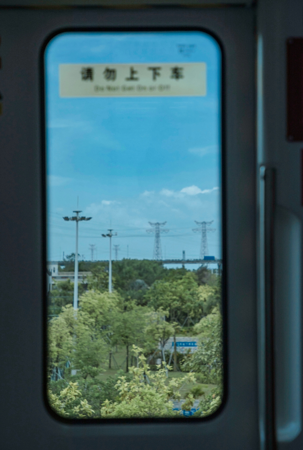 从地铁车窗往外看去,碧蓝的晴空,云朵或飘散,或聚集,层叠起伏、百态形状。