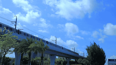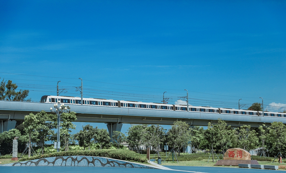 站在西湾红树林公园的海边,在浪潮声中听见11号线从头顶飞驰而过,白色的车厢是蓝天与绿树之间最自然的分界线。