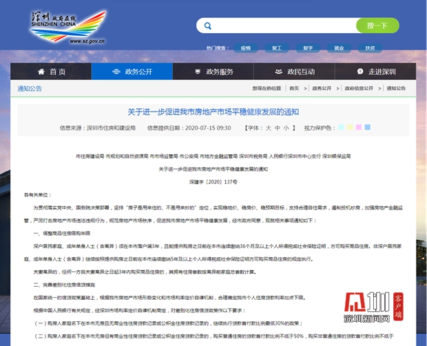见圳客户端.深圳新闻网2020年7月15日讯(见圳客户端、深圳新闻网记者张玲)“我带客户从龙华来罗湖,走到一半,客户失去了购房资格……”房产中介的这条信息今天刷屏了,其背景正是7月15日深圳推出的房产新政。
