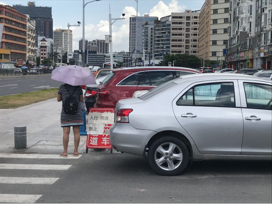 人行道变成私人停车场,过路行人苦不堪言