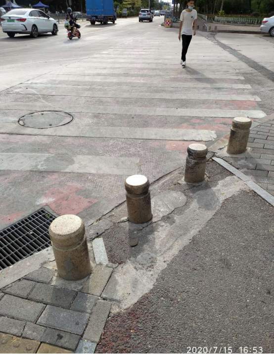 根据网友贴图留言所述,宝安区新和大道才华学校路段的人行绿道,在与过街斑马线相交处的路口,被水泥石墩挡住,导致骑自行车、电动车的市民通行不便。市民留言,绿道本是方便骑行市民的,何故要在绿道出入口设置石墩,太不人性化了,希望市政相关部门尽快拆掉石墩。