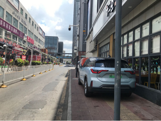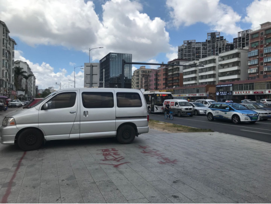 走访时记者还发现,在清湖地铁站旁边的阳光365家具广场的西侧道路,与清泉路相交的路口处,路边就是禁停标识,有4辆小车竟然直接停在了人行道上,行人根本无道可走。