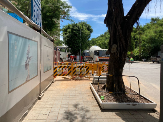 施工占据人行道,但没预留出临时通道