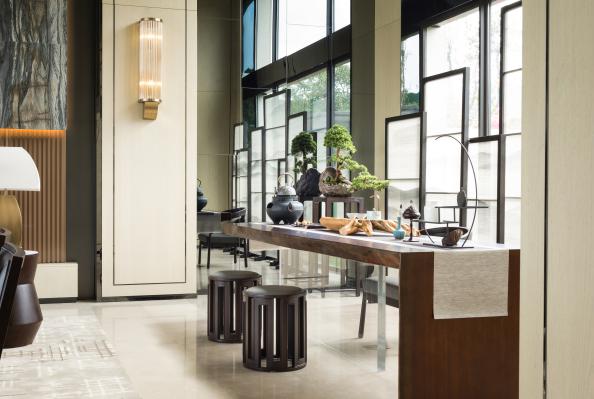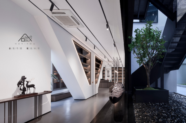 殷艳明作品案例—成都万科玖西堂叠拼样板间实景图(下左)与合域生活美学馆(下右)