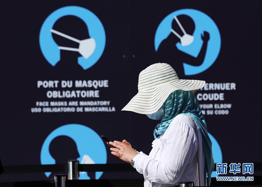 7月6日,一名女子在进入法国巴黎卢浮宫博物馆前戴上口罩。新华社记者高静摄