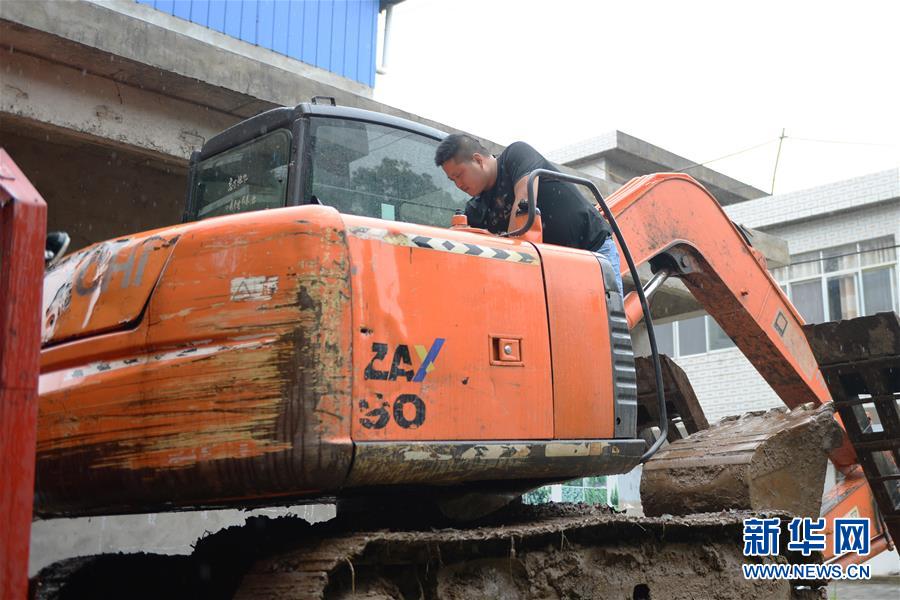7月16日,铁铜乡中南村抗洪抢险队员、挖掘机手丁钱中在检修设备。受长江持续高水位影响,安徽省枞阳县的铁铜乡江心洲已于近日将江心洲上的居民转移安置,而包括抢险队员、乡镇干部、水利工程师等在内的近300人“留守”在江心洲上巡堤查险,守护家园。铁铜乡位于长江江心洲上,有4个行政村52个村民组,耕地面积12000多亩。新华社记者黄博涵摄