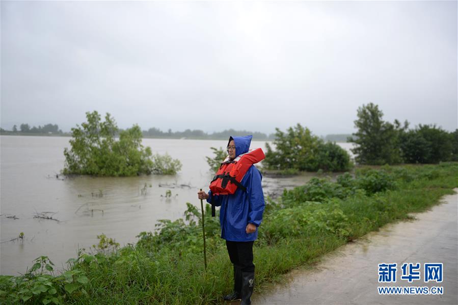7月16日,铁铜乡江头村驻村干部张立伟在查看长江水情。受长江持续高水位影响,安徽省枞阳县的铁铜乡江心洲已于近日将江心洲上的居民转移安置,而包括抢险队员、乡镇干部、水利工程师等在内的近300人“留守”在江心洲上巡堤查险,守护家园。铁铜乡位于长江江心洲上,有4个行政村52个村民组,耕地面积12000多亩。新华社记者黄博涵摄