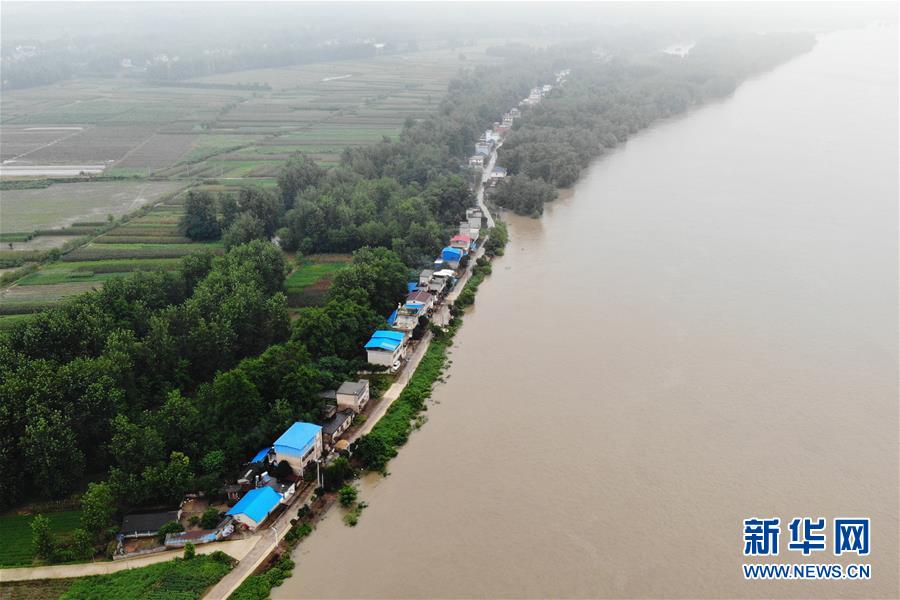 这是7月16日拍摄的铁铜乡江心洲(无人机照片)。受长江持续高水位影响,安徽省枞阳县的铁铜乡江心洲已于近日将江心洲上的居民转移安置,而包括抢险队员、乡镇干部、水利工程师等在内的近300人“留守”在江心洲上巡堤查险,守护家园。铁铜乡位于长江江心洲上,有4个行政村52个村民组,耕地面积12000多亩。新华社记者黄博涵摄