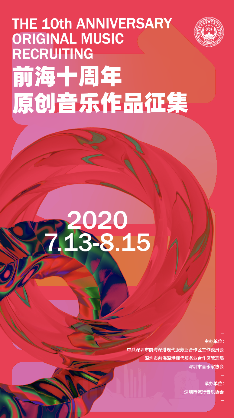 “湾区风来新时代,改革开放再出发”,2020年是深圳经济特区建立40周年,也是前海合作区成立10周年。为了进一步诠释和表现前海这片创业的热土,激励广大音乐爱好者创作一批歌颂前海十年来取得的丰硕成果,富有时代特征和号召力、积极向上的优秀原创歌曲,现开展“前海十周年原创音乐作品”征集活动,有关内容通知如下:
