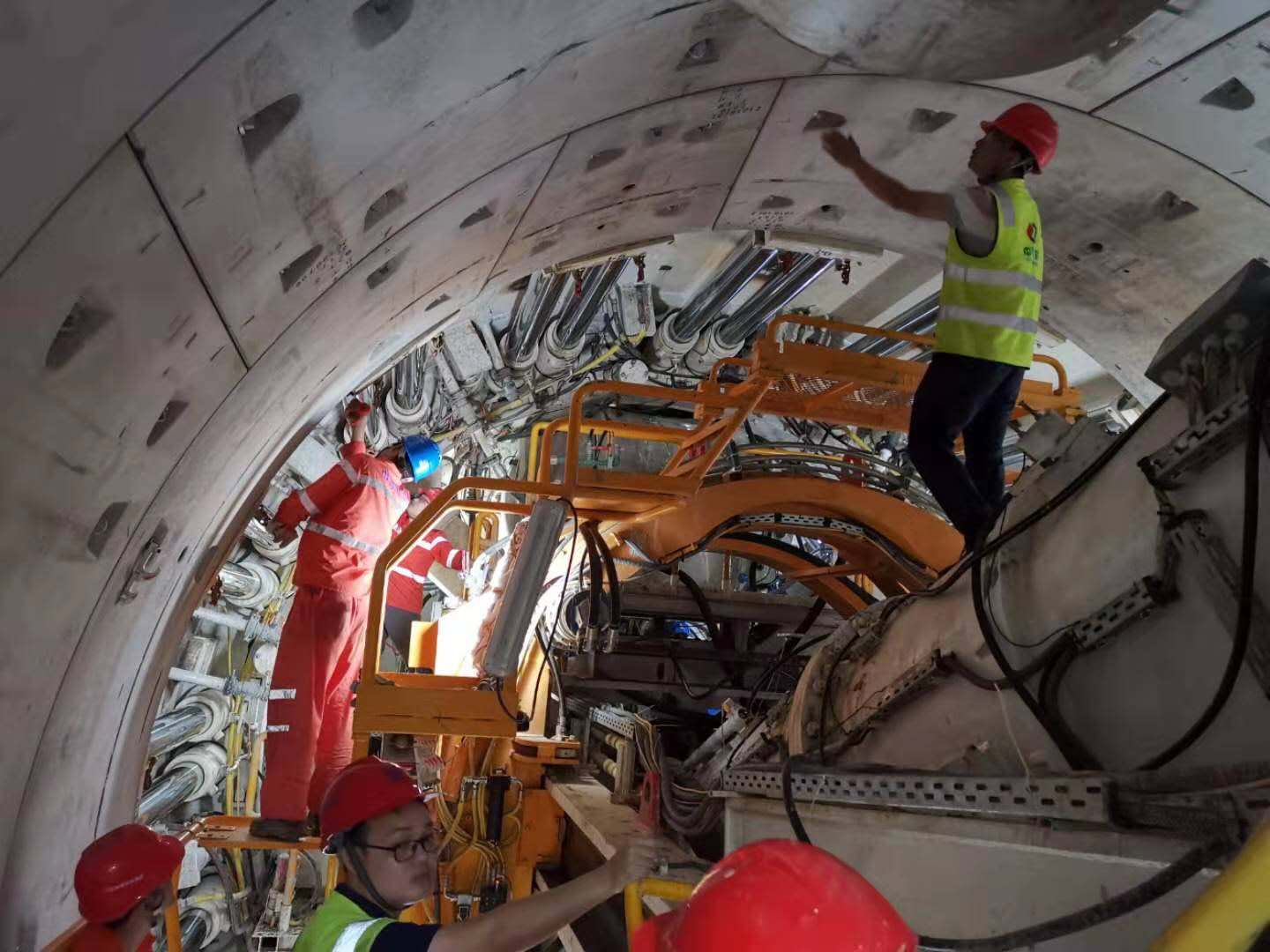 为了加速推进盾构施工,深圳地铁集团与中国电建等牢抓地面、地下两条主线:一方面将盾构接收时间与交通疏解方案科学衔接,积极邀请交警部门现场指导,设置安全标识、标牌,安装侧向交通标线,尽量避免破道路既有标牌、标线及道路沥青面层,最大限度减小对会展开馆的影响。另一方面,严格控制盾构掘进速度、土压平衡和盾构姿态,减少对土体的扰动,在相应区域加强同步注浆,并根据监测情况实施二次注浆,并在建筑物敏感地段实施跟踪注浆等,此外,积极采取动态信息化施工,加大监控频次并及时进行数据的整理分析,科学指导盾构施工,为区间的顺利贯通奠定基础。