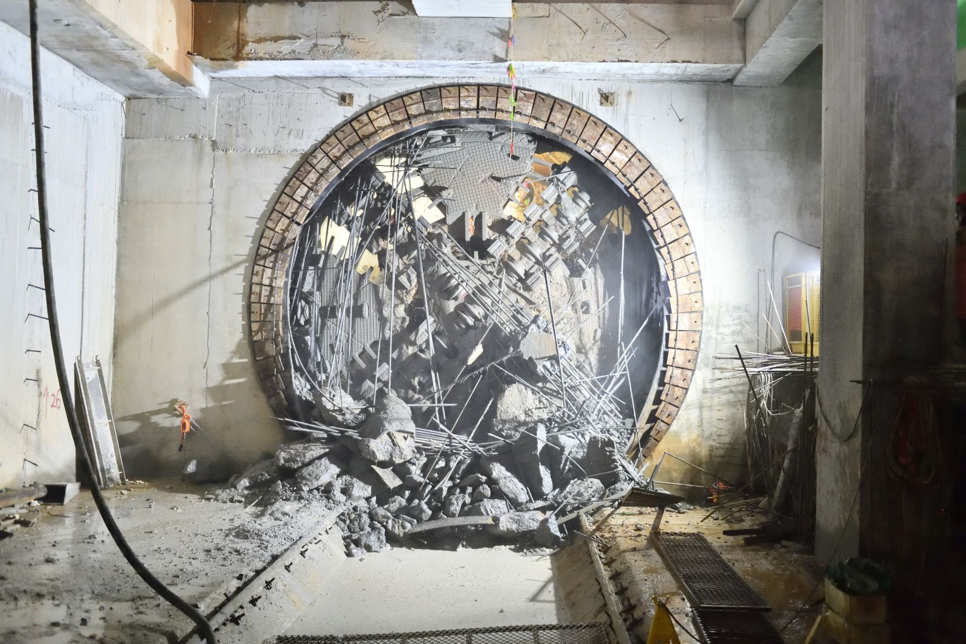 见圳客户端·深圳新闻网2020年7月17日讯(深圳特区报记者 徐兴东 文 刘羽洁 图)7月17日,随着 “开拓者叁号”盾构机刀盘缓缓破壁而出,深圳地铁12号线和平站—会展南站右线盾构区间顺利贯通,标志着和—会区间双线贯通,是全线第二个实现双线贯通的盾构区间。