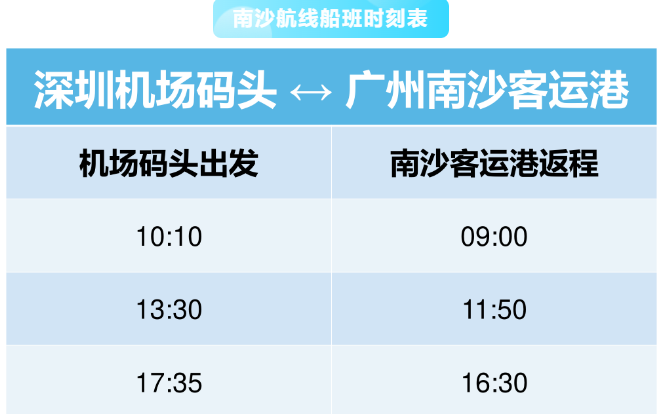 1.凭深圳宝安国际机场起飞航班机票信息,可申购航班起飞前24小时内就近时刻的、广州南沙客运港出发0元船票(限本人);