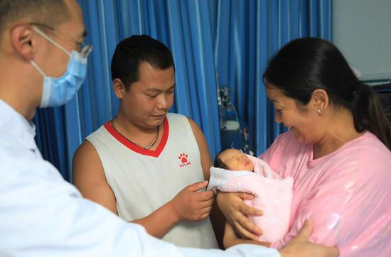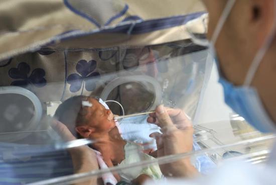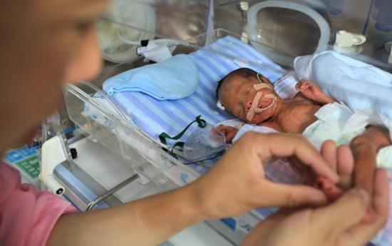 7月19日16时,经过察隅县人民医院医护人员15天的抢救,早产儿"松小英之子"终于脱离了生命危险,孩子第一次被郑淮武主任抱出保温箱,抱到产妇松小英怀里,松小英终于露出了欣慰的笑容。