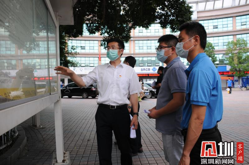 南湾街道党工委书记刘渊(左一)检查辖区创文工作。