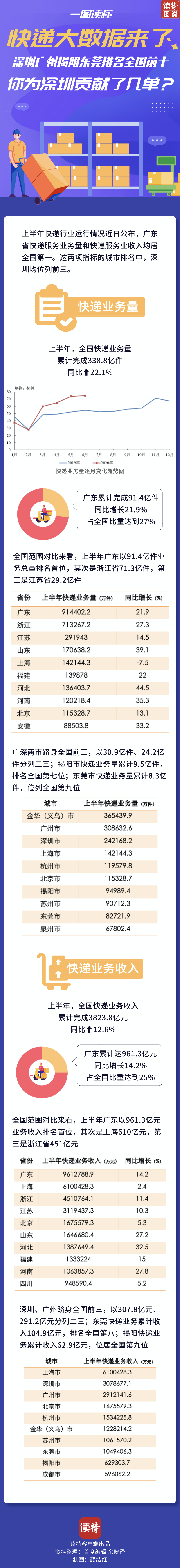 一图读懂|快递大数据来了 深圳广州揭阳东莞排名全国前十 你为深圳贡献了几单?