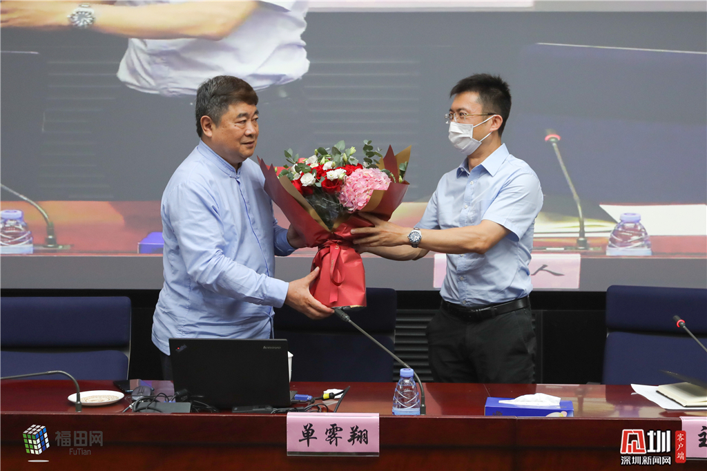 讲座结束后,福田区委副书记、区长黄伟为单霁翔老师送上鲜花并号召现场的听众为单老师送上热烈的掌声。