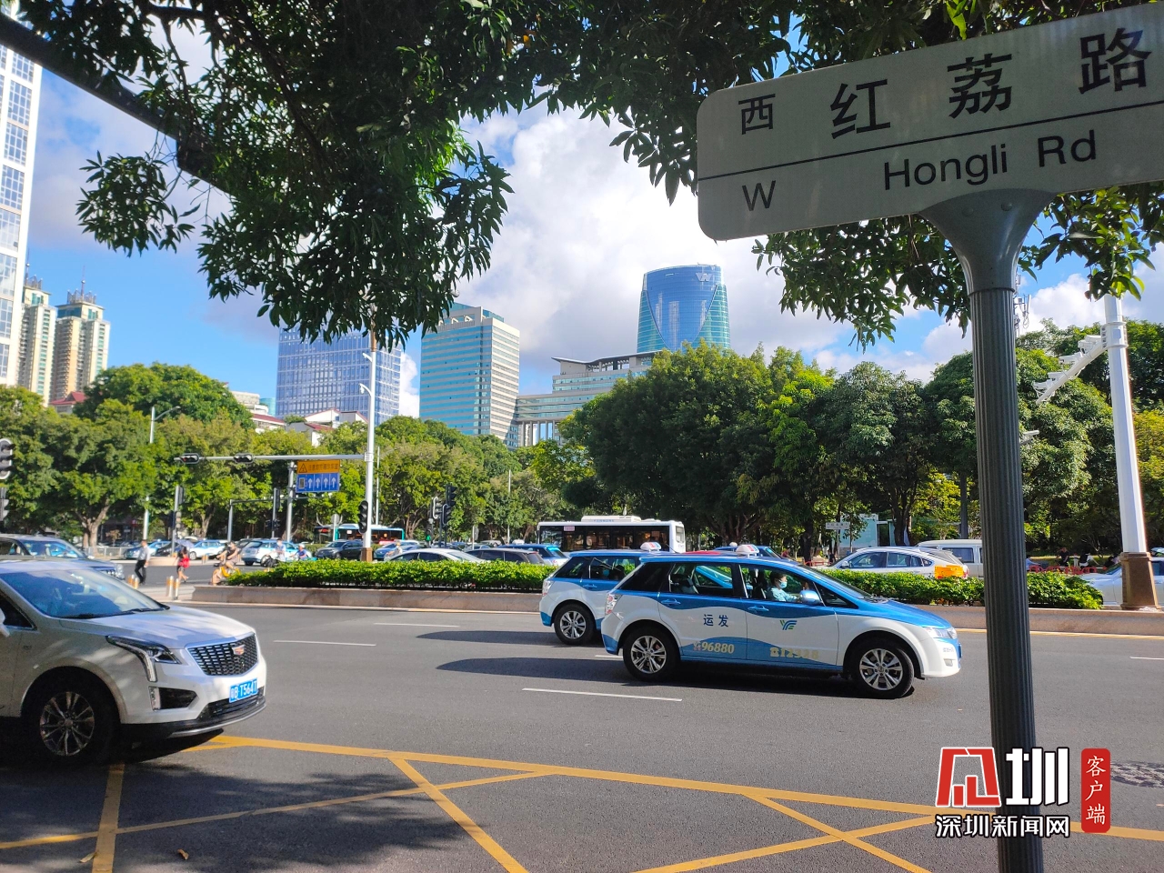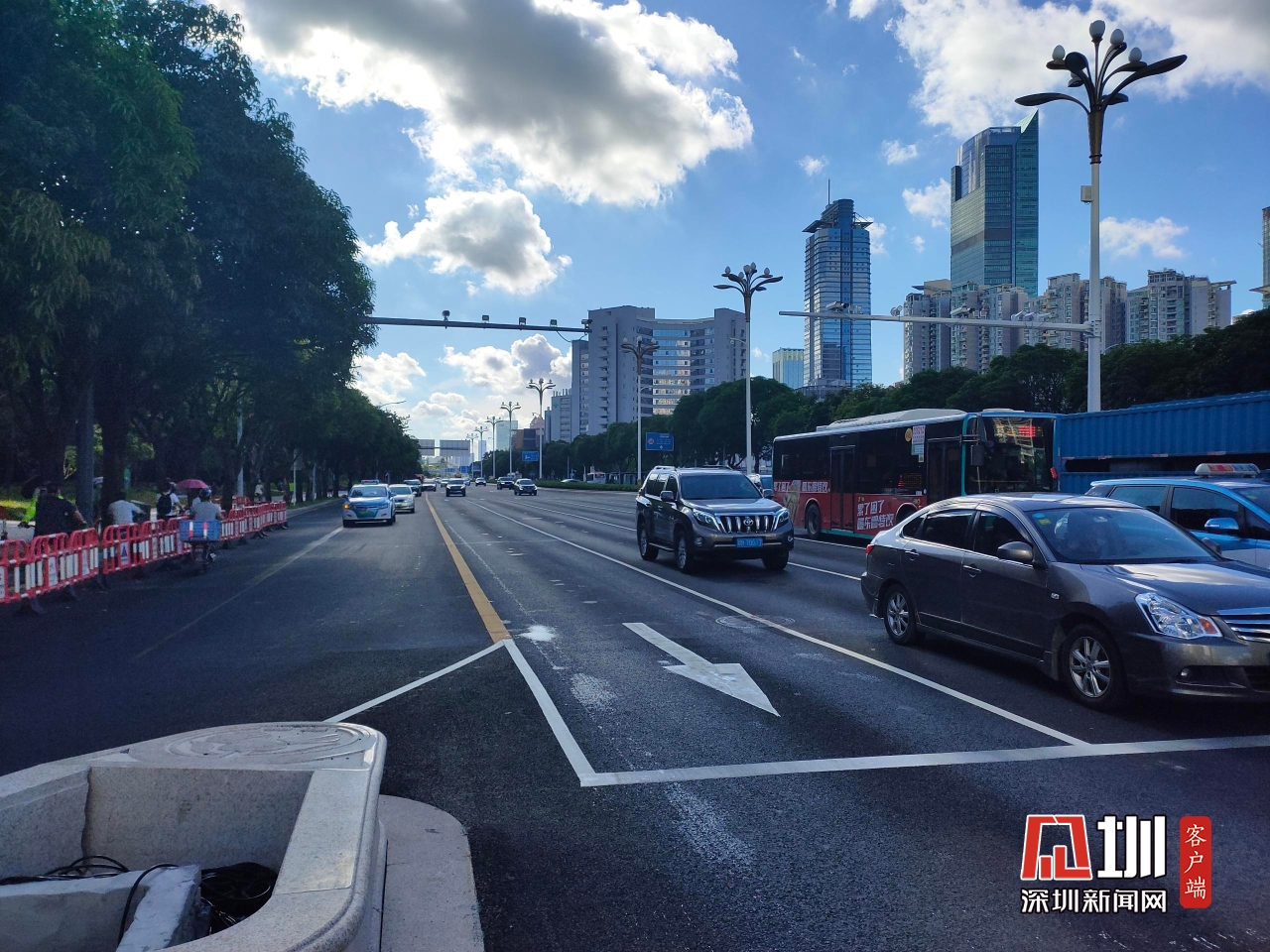 【红荔路】上午8时,记者在红荔路和新洲路交汇处拍摄实时路况。