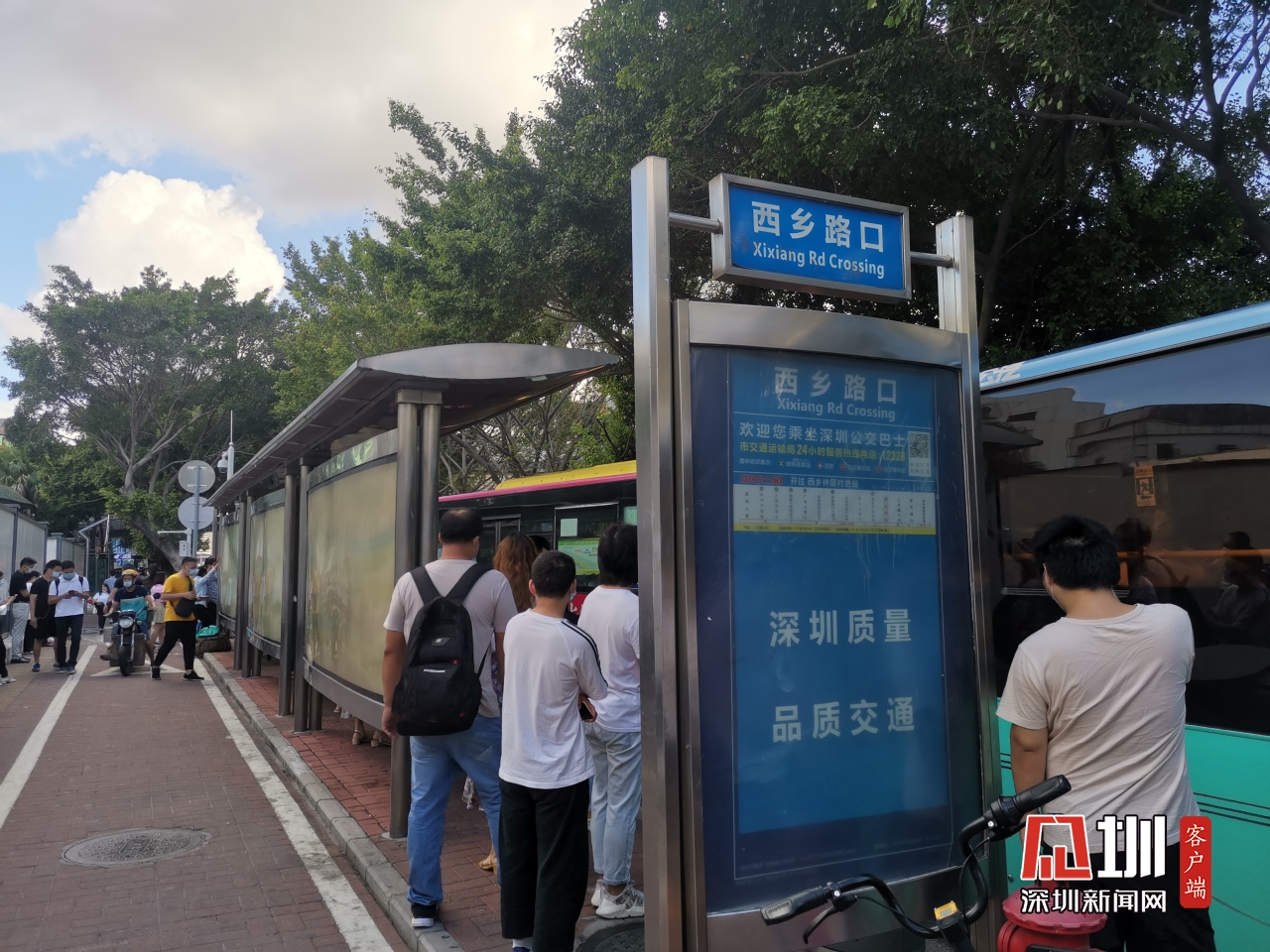 【广深公路】上午8时19分,记者位于西乡路口公交站台的实时路况,该站台有多路公交来往市区。