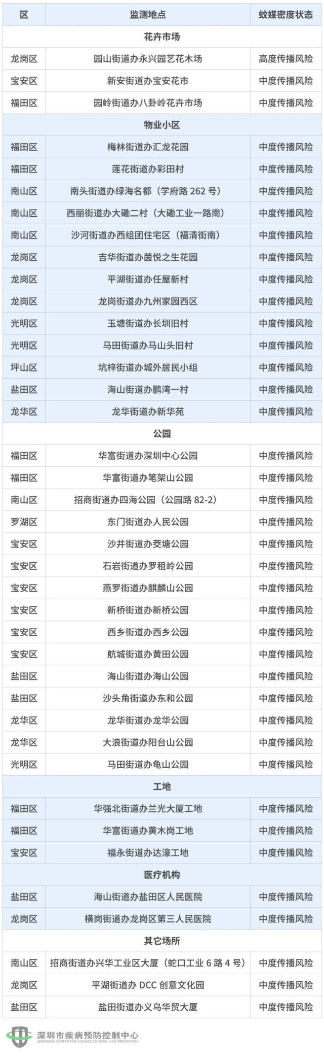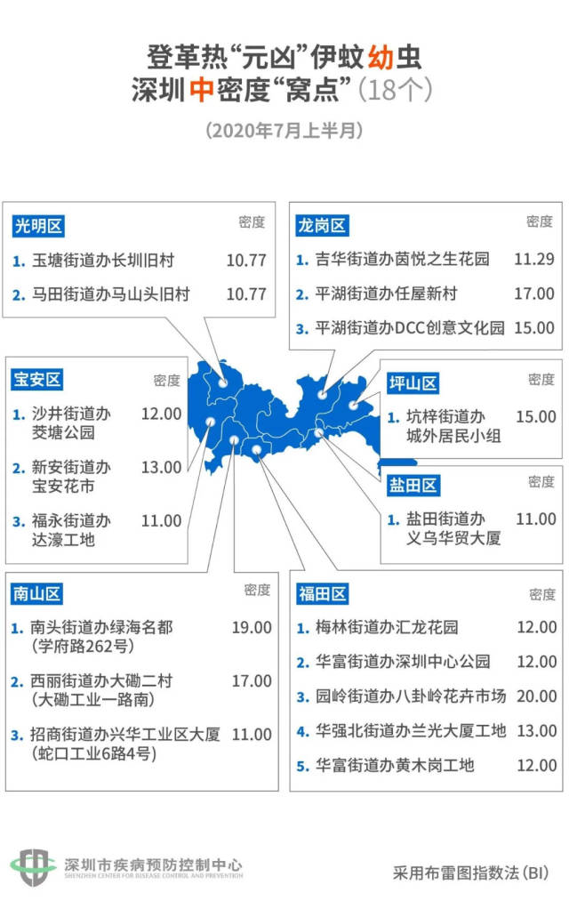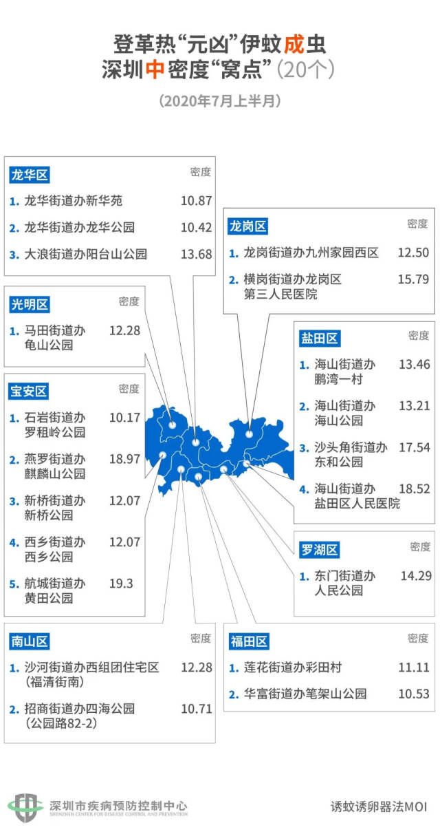 7月24日,深圳市疾控中心发布了7月上半月(7月1日-15日)的全市伊蚊密度监测结果。