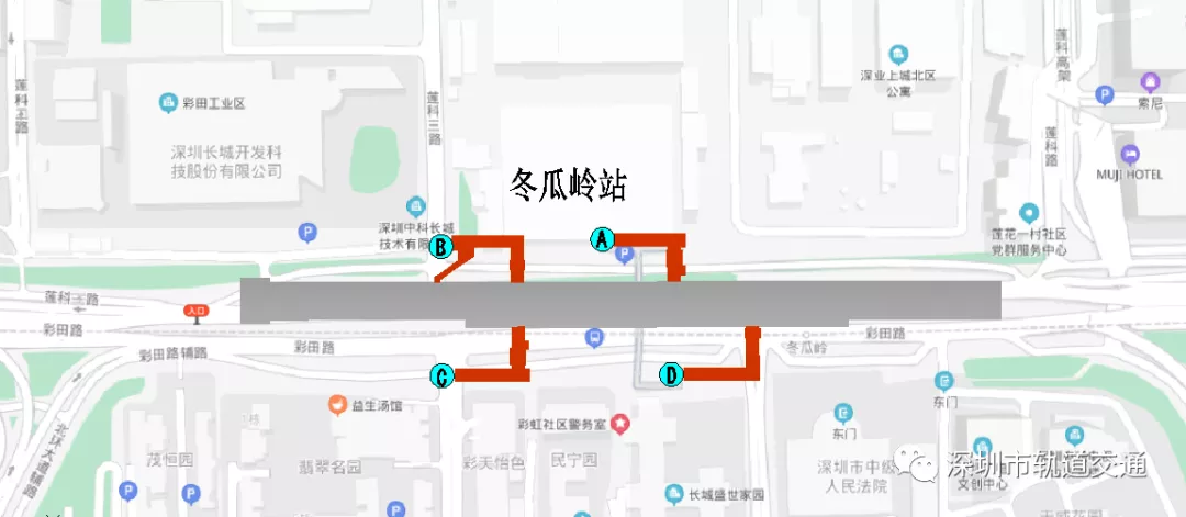▲图2:冬瓜岭站出入口分布示意图