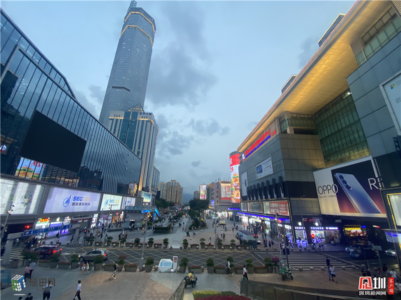 临近傍晚,华强北步行街逛街的市民越来越多。