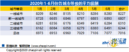 虽然求职竞争激烈,但一线城市应届生起薪水平高于其他城市,也令不少毕业生更青睐选择。《报告》表明,3月份之后应届生薪酬有所增加,二季度各月份的应届生起薪也在逐渐提高。分城市等级来看,一线城市应届生平均起薪最高,为8227元,而新一线、二线、三线城市薪酬逐渐递减,分别为6807、6310和6244元。从趋势变动来看,3月之后一线和新一线城市应届生薪酬变动较小,而二线、三线城市薪酬上升明显。