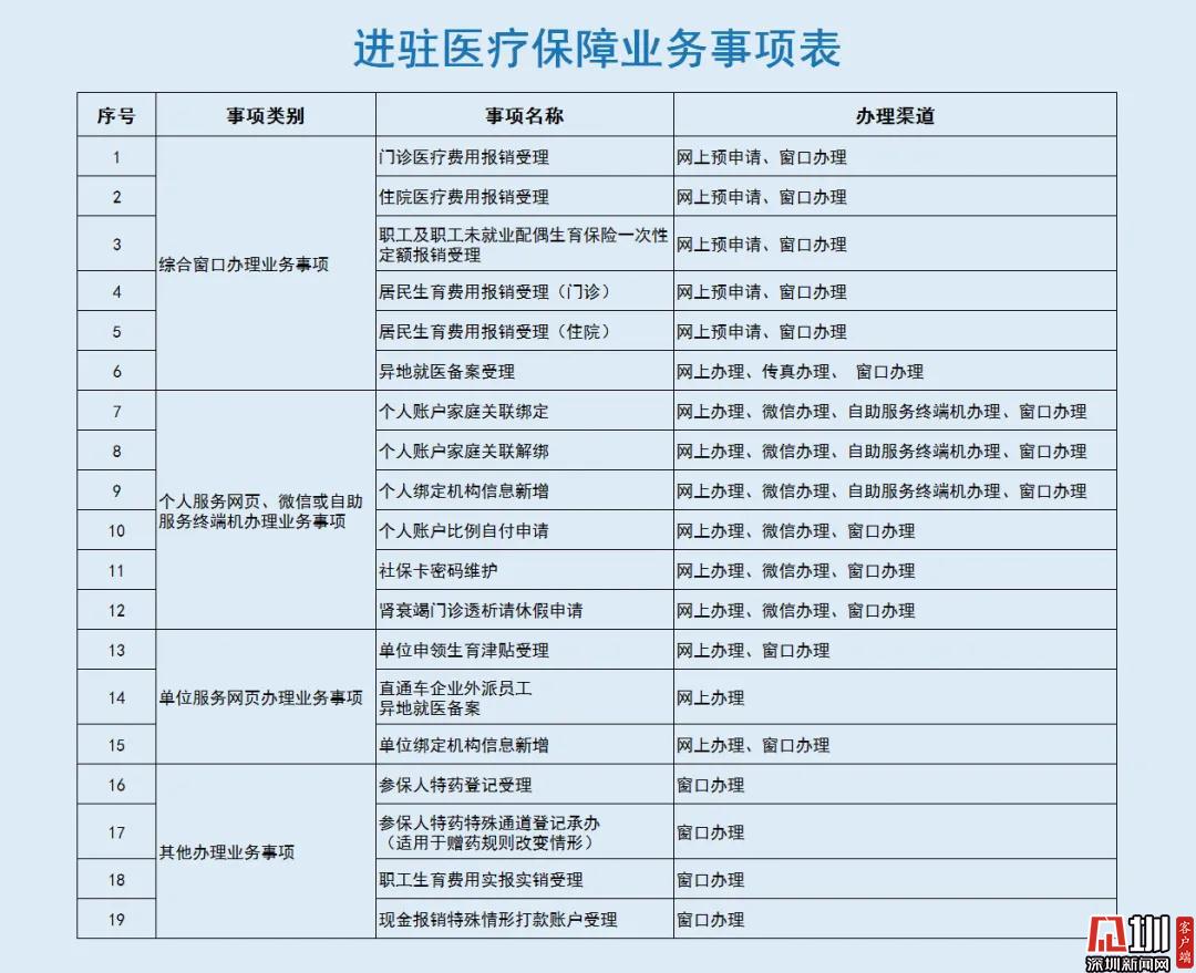 本次进驻社区的医疗保障业务包括医疗保险现金报销、异地就医备案、生育医疗保险和职工生育保险现金报销、单位和个人自办业务等19项常见医保业务。