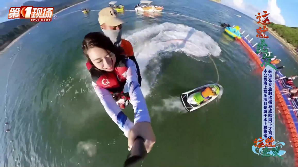 在2018年9月,西涌海滩曾遭受超强台风重创,满目疮痍。随后,大鹏新区推进海滨带状环境品质提升,令西涌“浴火重生”。7月18日,西涌沙滩已经对外开放试运营,初愈的西涌海滩逐渐恢复了元气与人气,西涌沙滩“颜值”与“内涵”相比从前都得到了极大的提升。直播中,主持人书悦乘着摩托艇入场,排面十足。一段Insta360°拍摄的摩托艇、刺激的“海上飞龙”水上项目,让人看得周末就想立刻“安排上”这些水上体验。