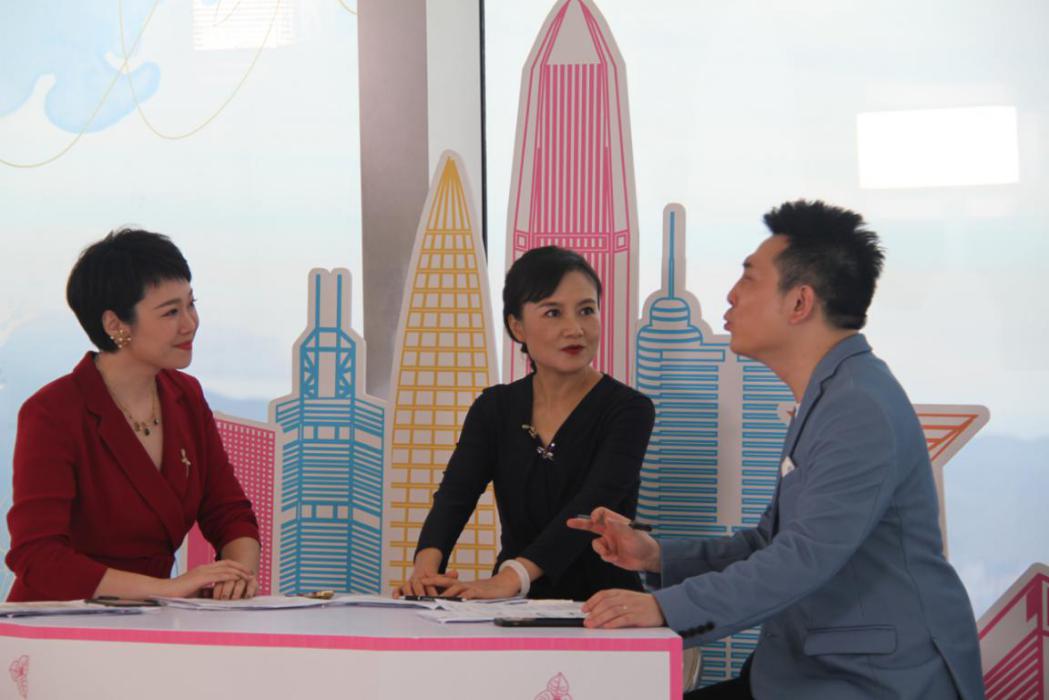 深圳市文化广电旅游体育局副局长杨永群(中)参与到直播主持