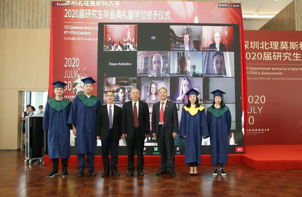 见圳客户端·深圳新闻网2020年7月30日讯(记者 金洪竹)7月30日,深圳北理莫斯科大学举行2020届硕士研究生毕业典礼暨学位授予仪式,24名硕士研究生从深圳北理莫斯科大学正式毕业。受疫情影响,今年的毕业典礼采用线上线下相结合的方式举行,共约100多位师生通过“云端”见证2020届硕士毕业生开启新的人生旅程。