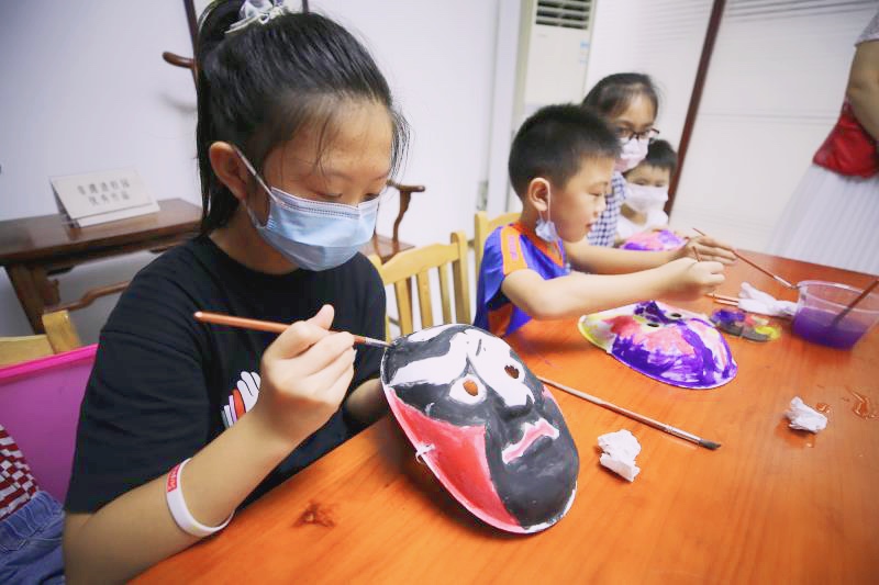 7月30日,南园街道文体中心手工传习室正在举行脸谱绘画活动。(黄思凌 摄)