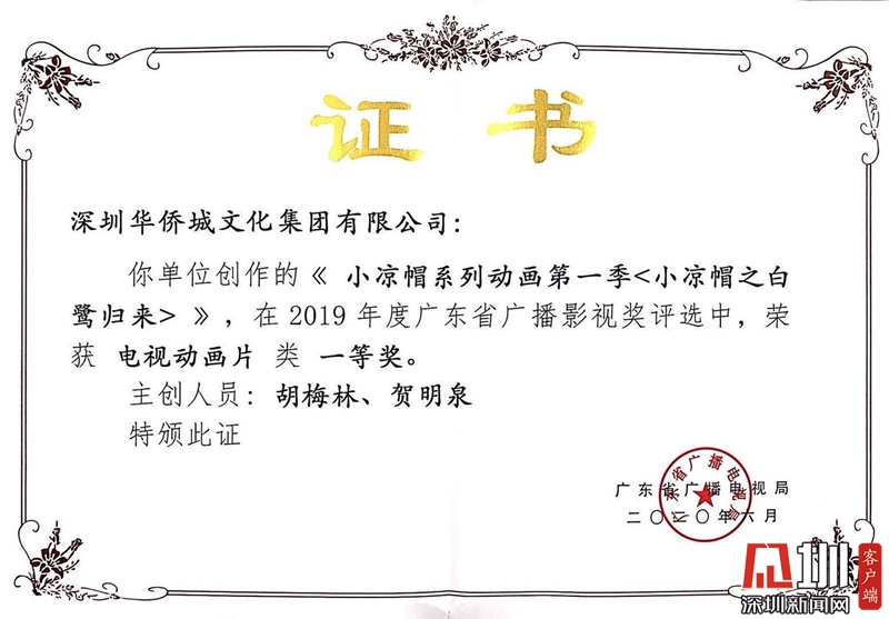 《小凉帽》动画获得2019年度广东省广播影视奖一等奖。
