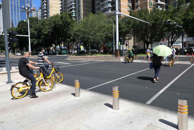 全路口设置无障碍坡道,铺设自行车道,道路更开放