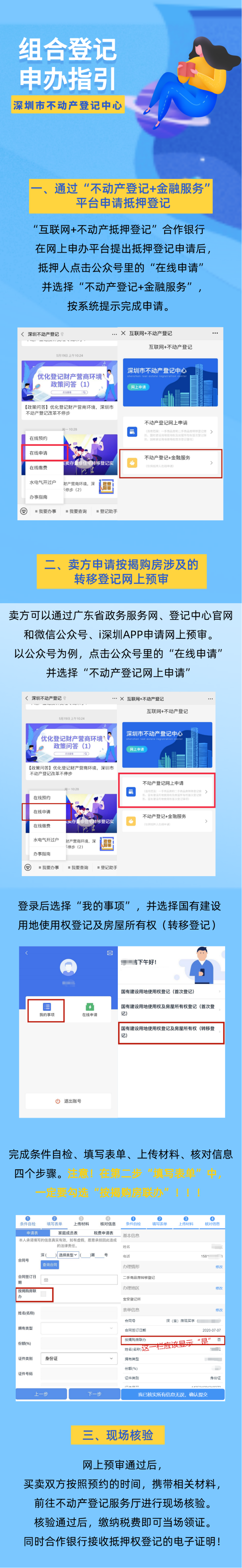 见圳客户端·深圳新闻网2020年8月4日讯(深圳特区报记者 秦绮蔚 通讯员 杨见闻)继商品房转移登记等业务实现网上预审、企业间买卖存量非住宅转移登记实现全市通办和全国免费寄证后,深圳市不动产登记中心又出新招啦:按揭购房涉及的转移登记与抵押登记,即日起可以组合办理,一次搞掂!