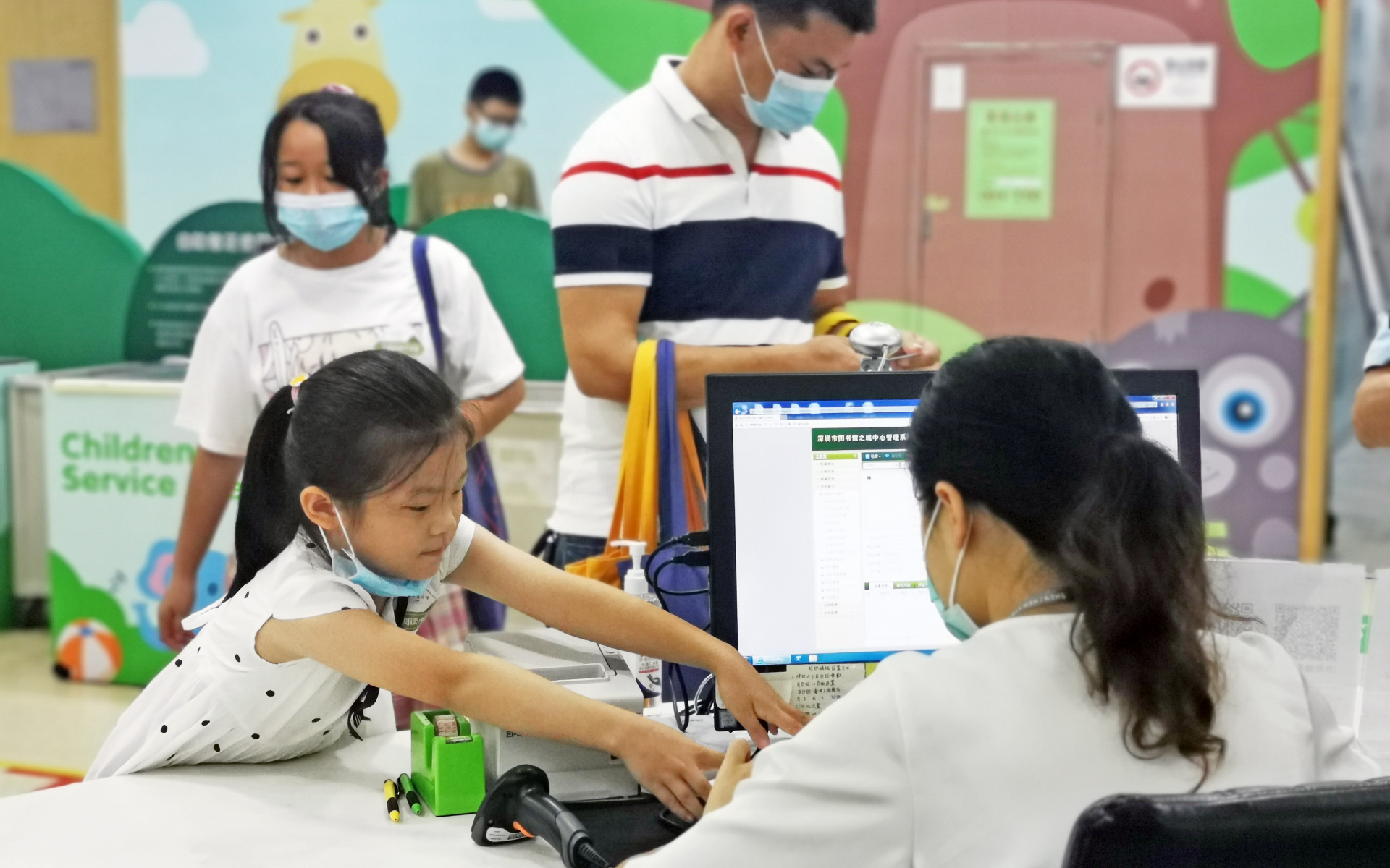 临离开深圳图书馆之前,“小候鸟”们争先恐后在服务台现场申办少儿读者证,好几个“小候鸟”都说,“我有读者证了,真好!暑假可以来这里看书了!”