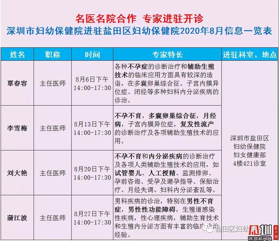市妇幼保健院生殖中心名医团队进驻盐田区妇幼保健院